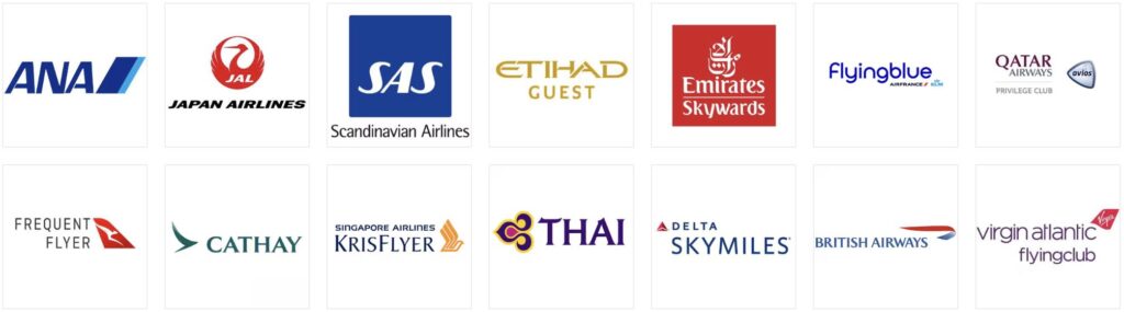 交換レートは各航空会社によって異なり、例えば10,000マイルに交換したい場合に必要なポイント数は以下の通りです!