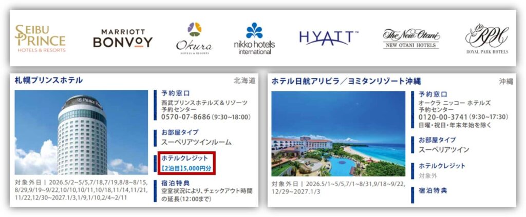 対象のホテルには、世界を代表するホテルチェーンの中から、北海道から沖縄まで40ものホテルがラインナップされています!